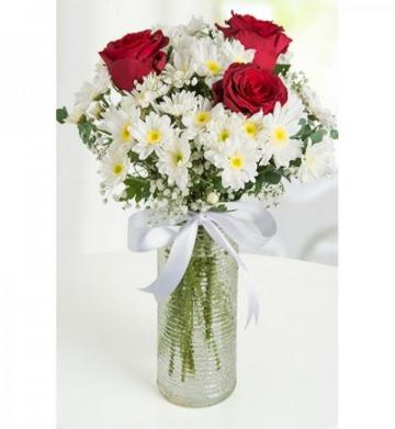 Aşkın simgesi kırmızı güller ve papatyalar bu eşsiz aranjmanda bir araya geldi. Aşkınızı ilk kez ilan ediyorsanız veya tazelemek istiyorsanız Aşkın Simgesi Güller ve Papatyalar tam size göre bir aranjman!